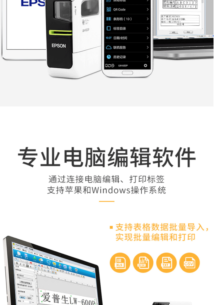 爱普生(EPSON)LW-600P 智慧型蓝牙标签打印机