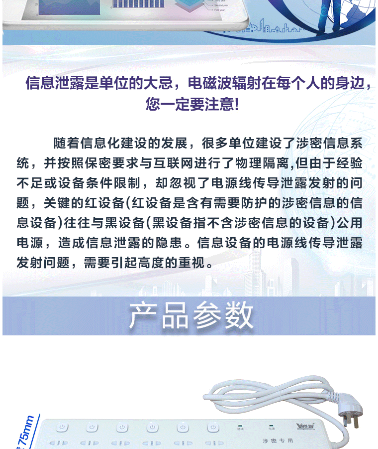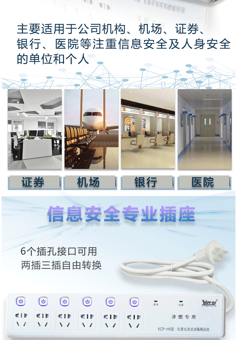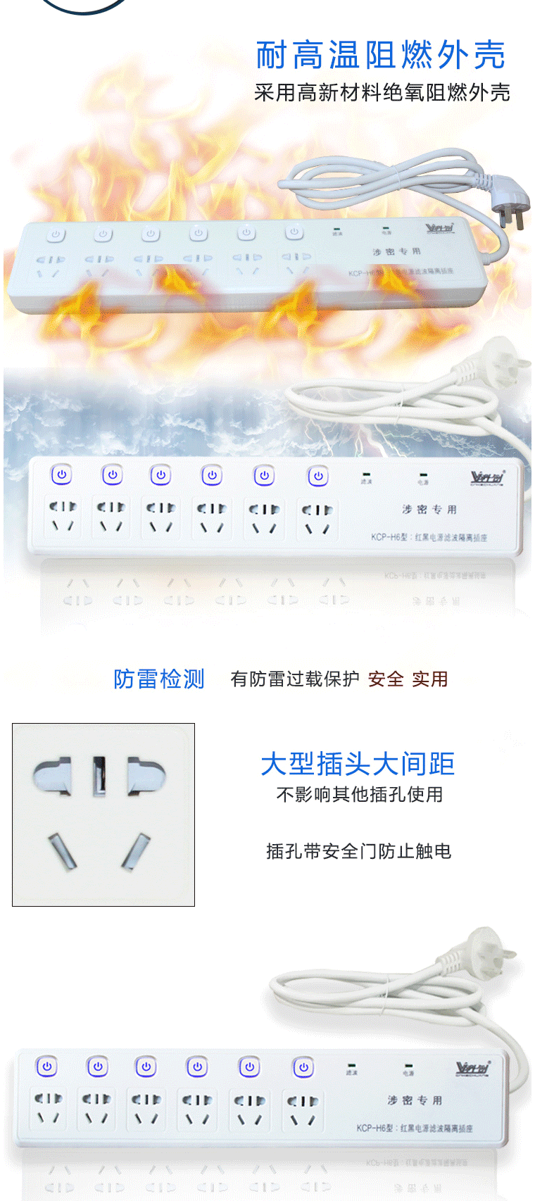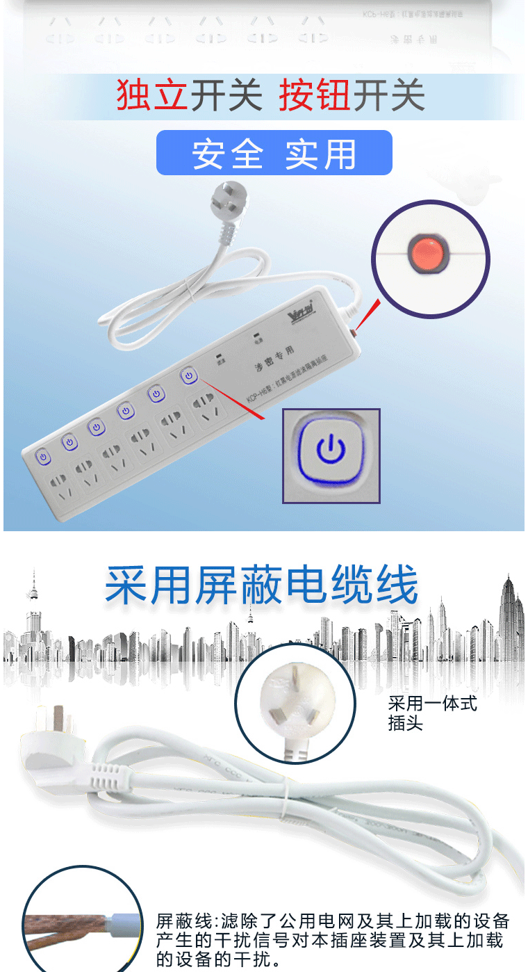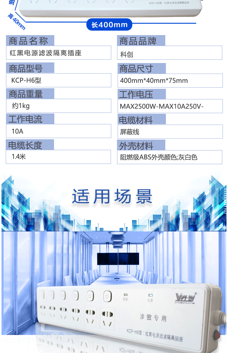商品名称:科创 红黑电源隔离插座 6孔位3米线插座 防泄密 防电磁辐射 KCP-H6