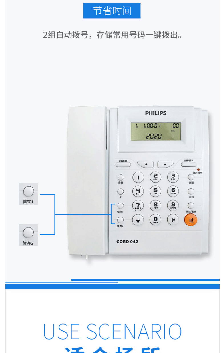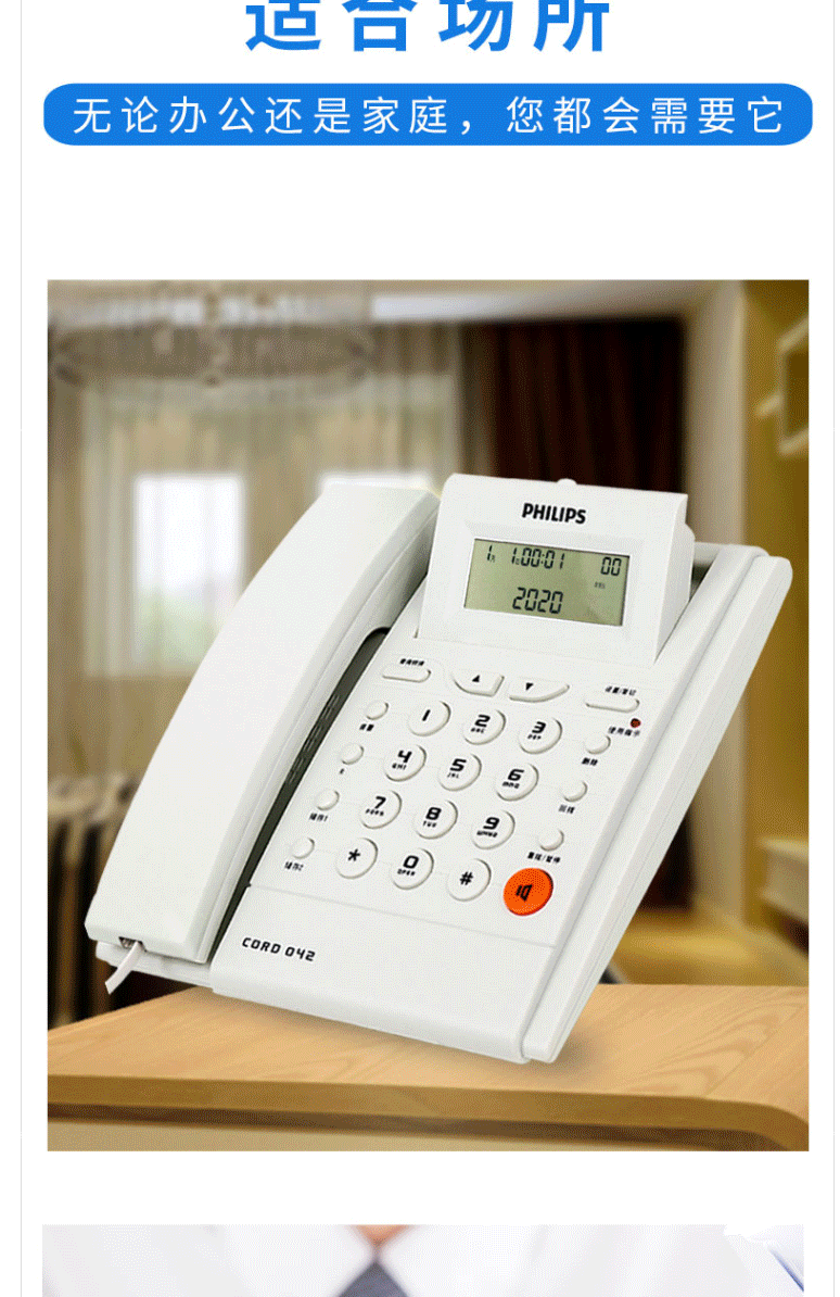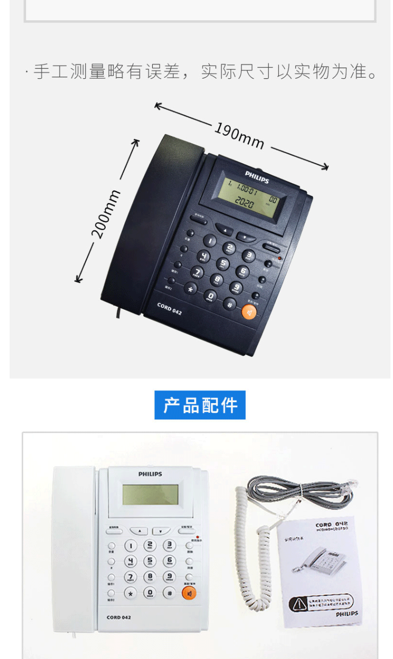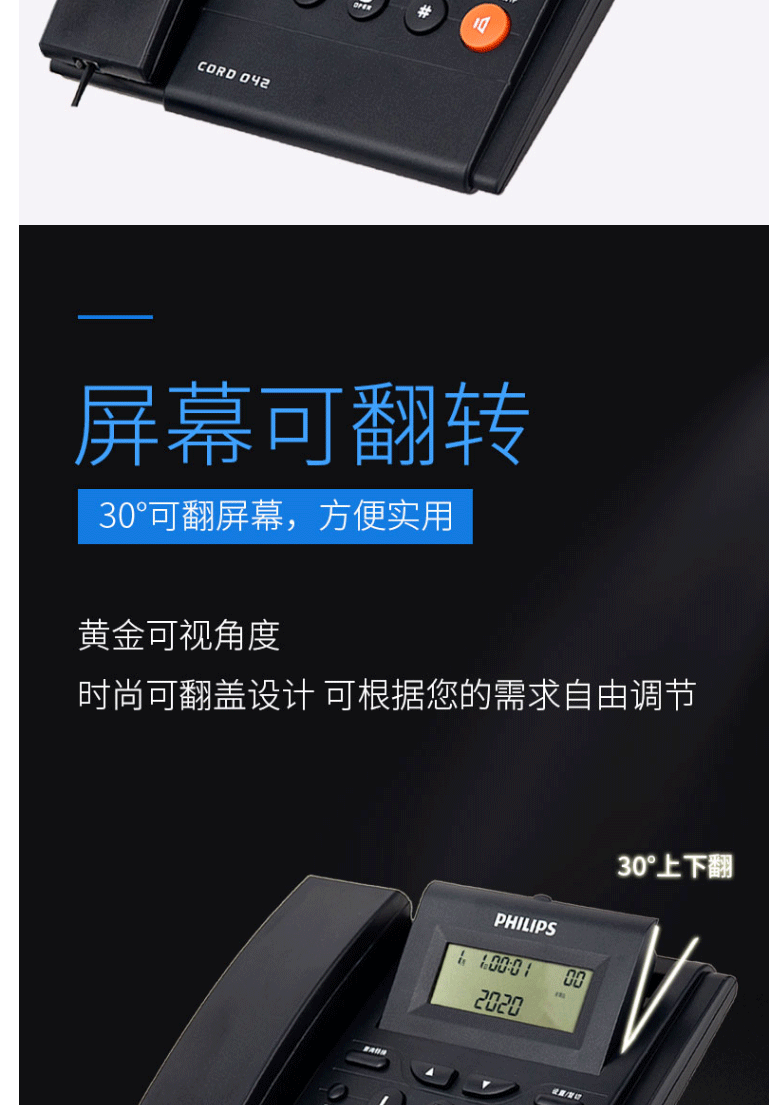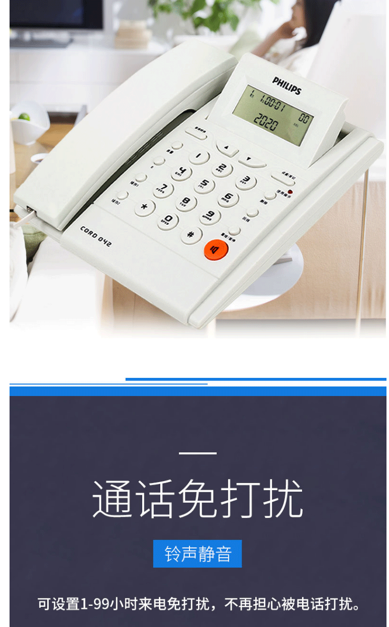 商品名称:飞利浦(PHILIPS)电话机座机 固定电话 来电显示 屏幕可调节 CORD042 (白色)