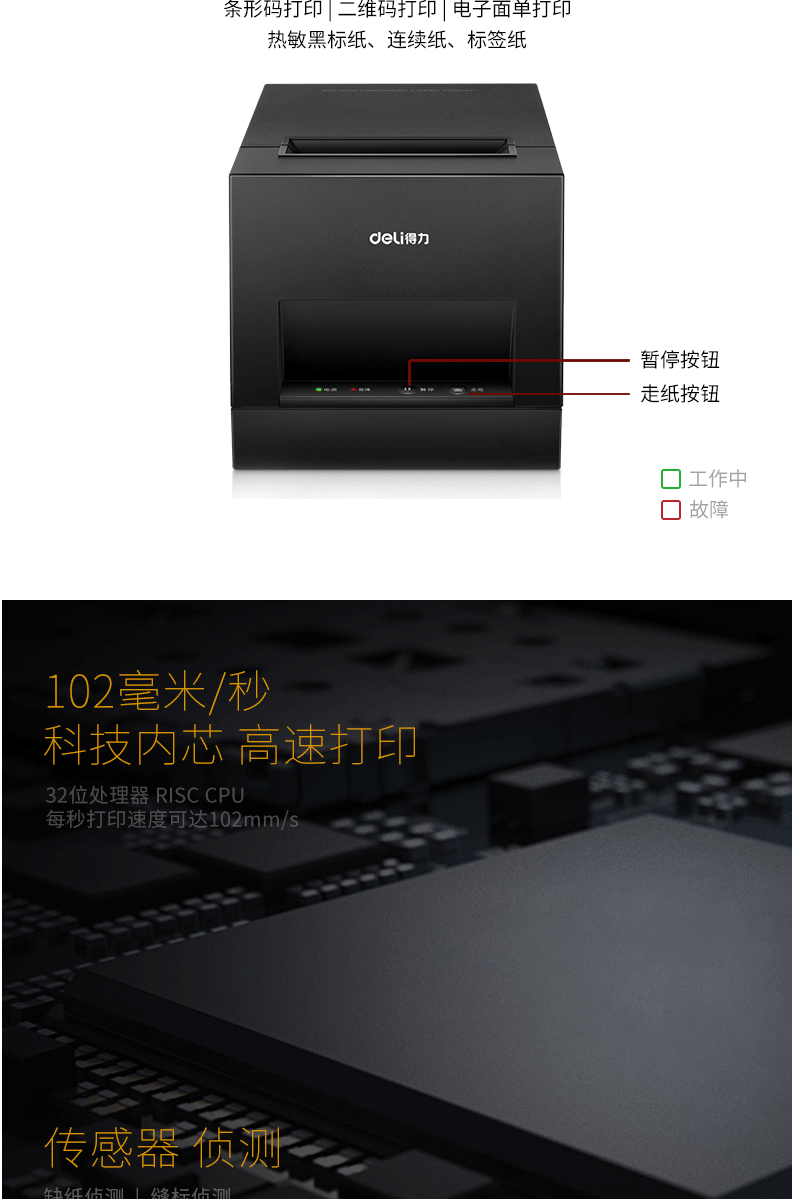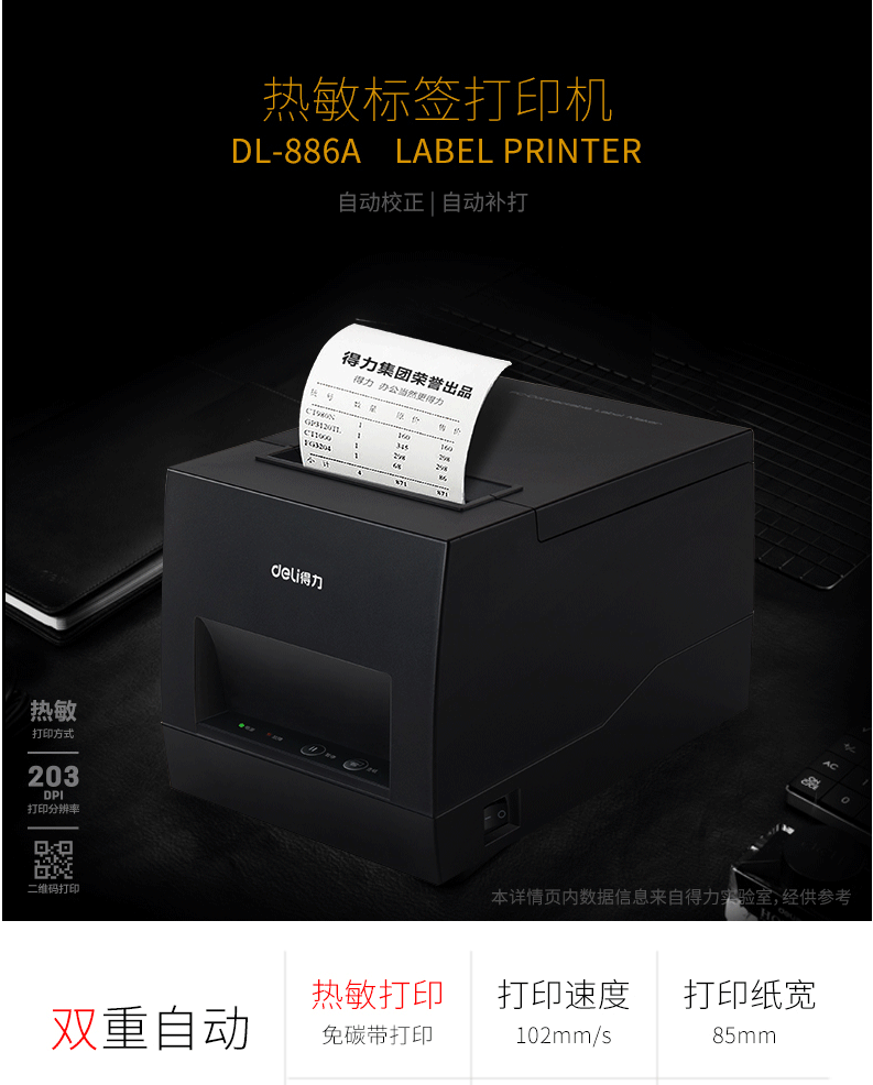 得力DL-886A条码打印机 热敏标签打印机(黑)