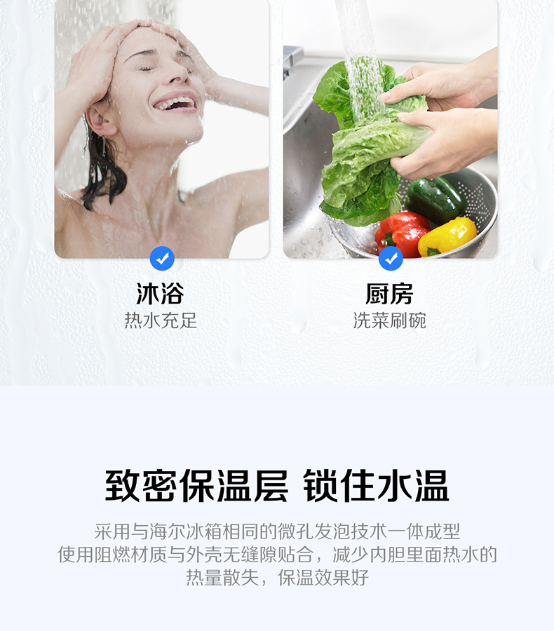 商品名称:海尔(Haier)100L储水式电热水器 大容量电加热 ES100H-HC(E)(安装免费,材料费另收)